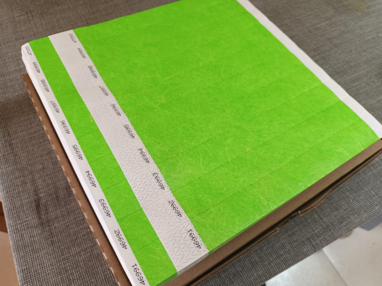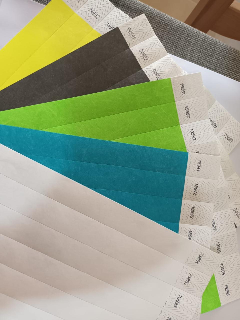 Su cierre adhesivo de alta resistencia evita reutilizaciones o falsificaciones, mientras que su textura ligera garantiza comodidad durante todo el evento.
