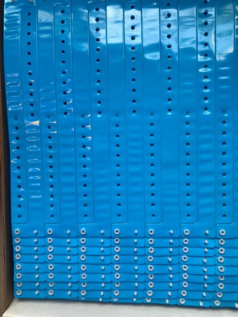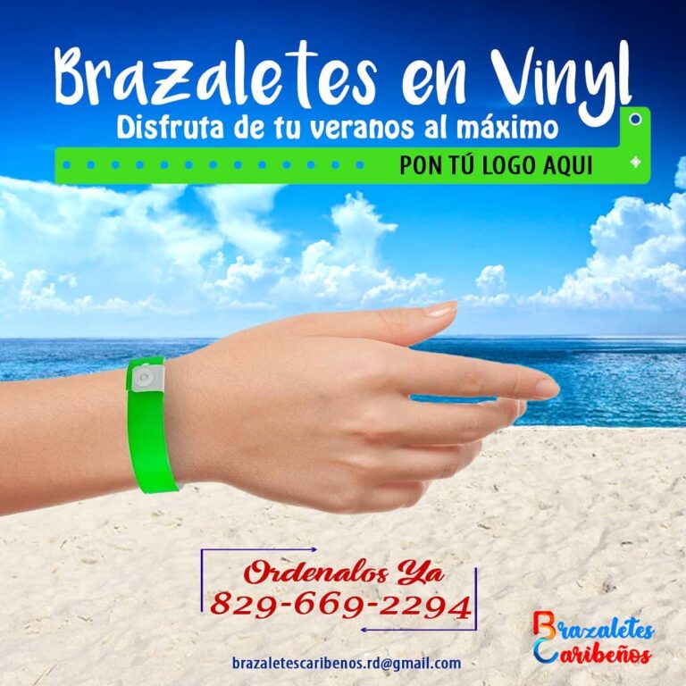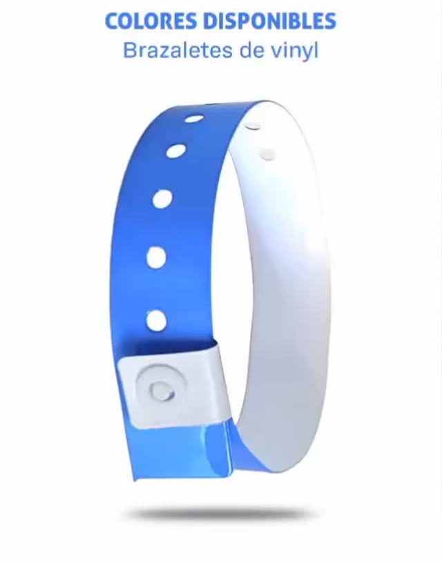 Los brazaletes Vinyl de Brazaletes Caribeños son la opción ideal para eventos de larga duración o donde se requiere un nivel superior de resistencia y seguridad. Fabricados en vinil flexible y duradero, ofrecen un acabado brillante, impermeable y confortable al tacto. Su cierre a presión asegura que no puedan ser transferidos ni reutilizados.